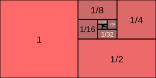 Una progresión geométrica decreciente e ilimitada es la que tiene infinitos términos cada vez más pequeños. Podemos representar a través del siguiente rectángulo.